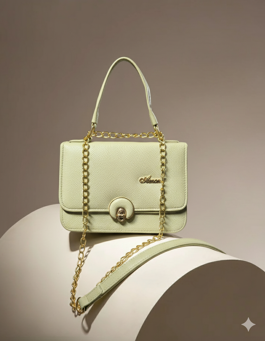 Description: A chic light green handbag with gold details — perfect for elevating any outfit with effortless elegance.